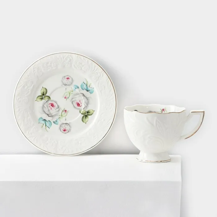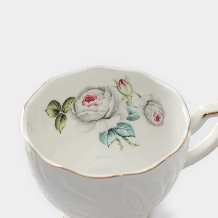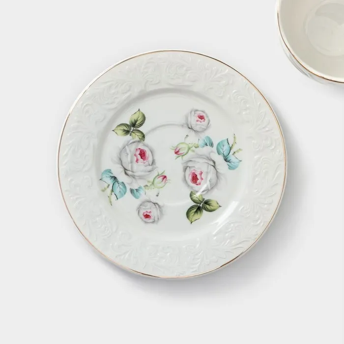 Сервиз фарфоровый чайный Rose, 12 предметов: 6 кружек 220 мл, 6 блюдец d=15 см, цвет белый — Характеристики