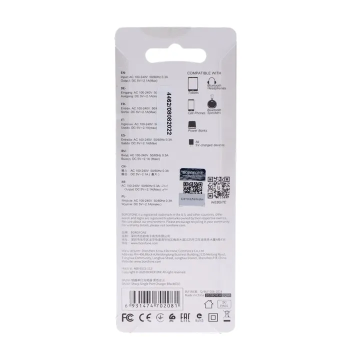 Сетевое зарядное устройство Borofone BA20A — это компактное решение для быстрой зарядки ваших устройств. Благодаря одному USB-порту с силой тока 2.1 А, оно обеспечивает эффективную и безопасную зарядку смартфонов, планшетов и других гаджетов.