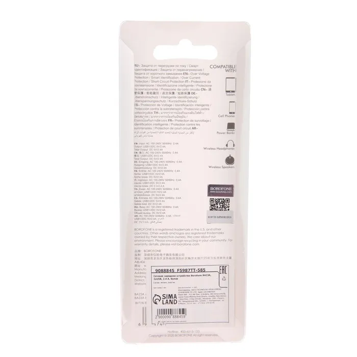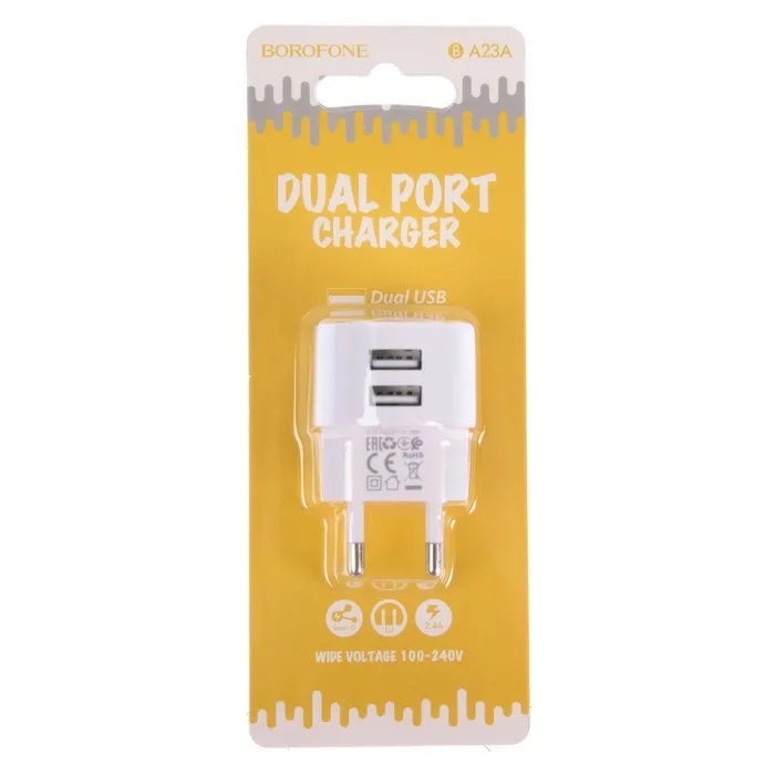 Сетевое зарядное устройство Borofone BA23A, 2xUSB, 2.4 А, белое — Характеристики