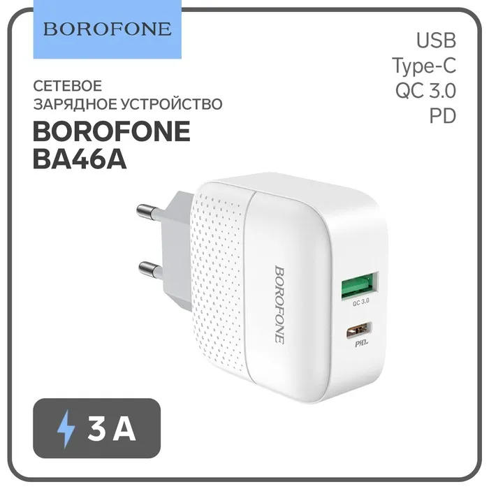Сетевое зарядное устройство Borofone BA46A, USB QC3.0 3 А, Type-C PD 3 А, белое — Характеристики