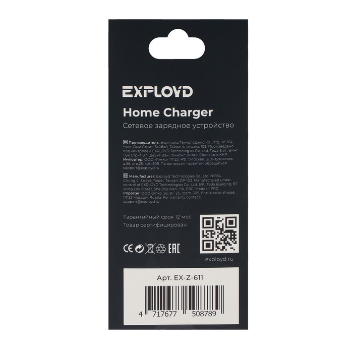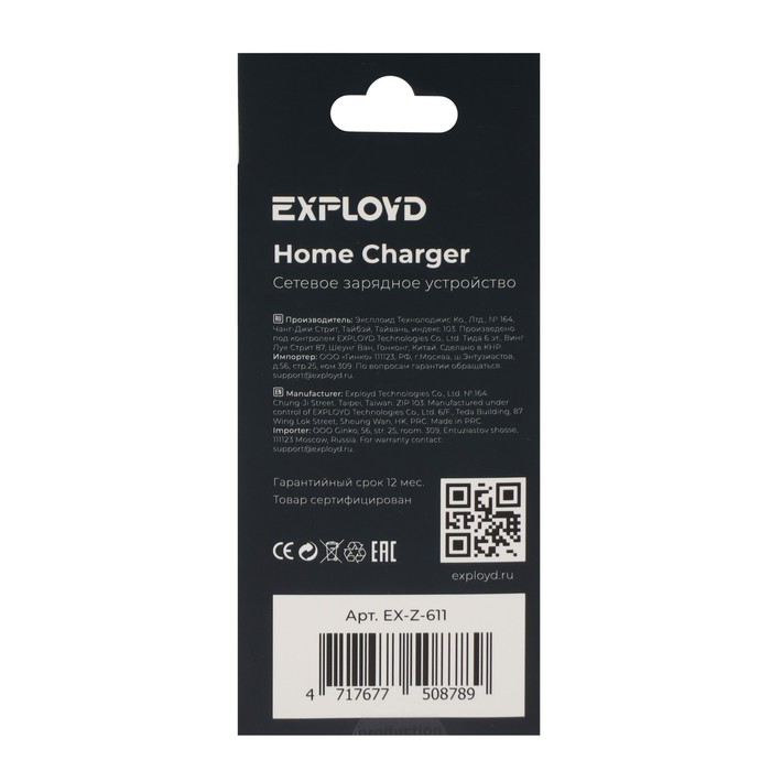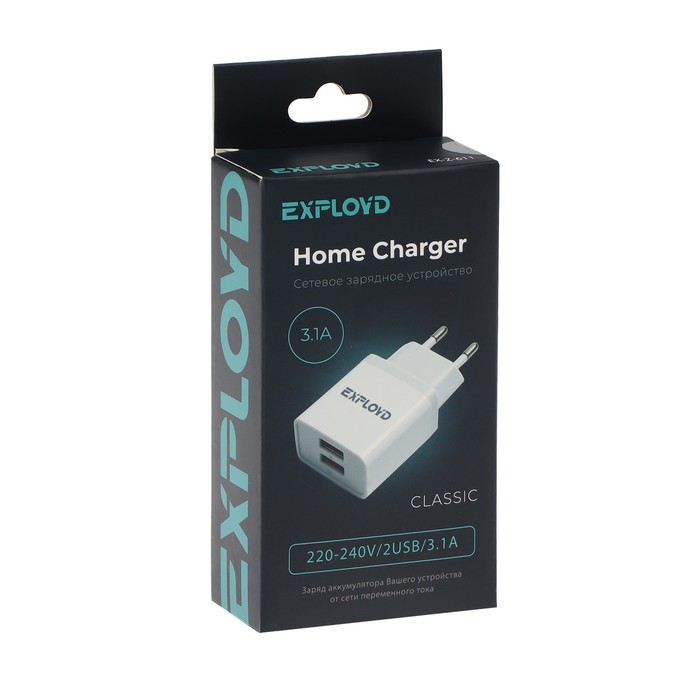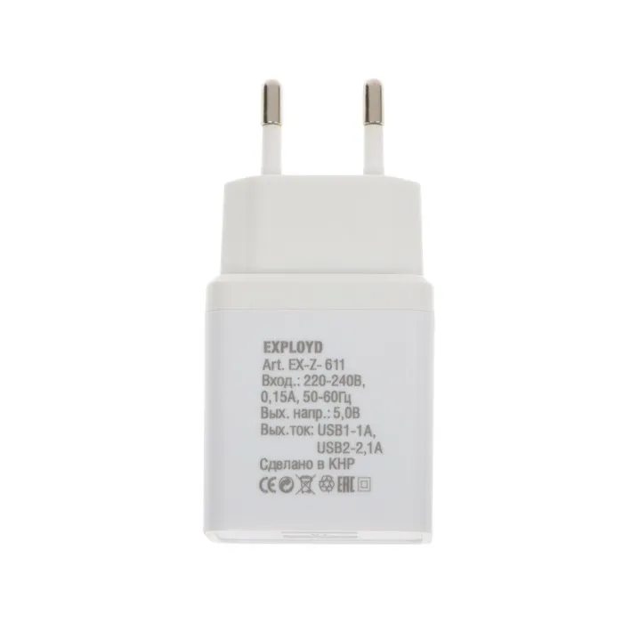 Сетевое зарядное устройство Exployd EX-Z-611, 2 USB, 3.1 А, белое — Характеристики