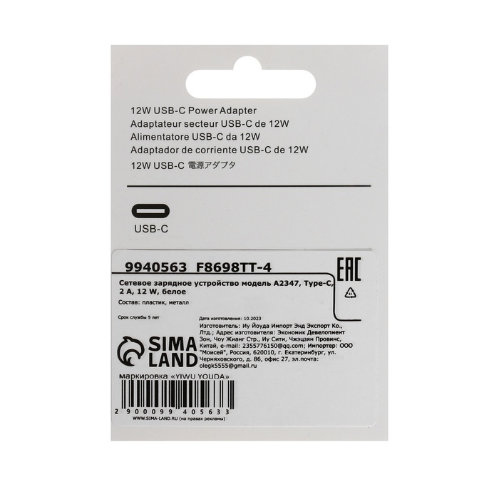 Сетевое зарядное устройство GQ-3, Type-C, 2 A, 12 W, белое — Характеристики