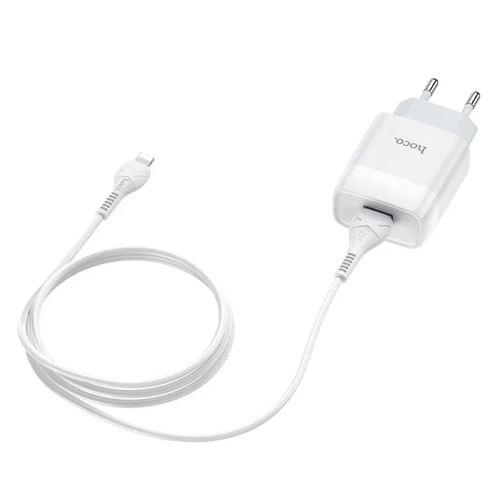 Сетевое зарядное устройство Hoco C72A, 1 USB, 2.1 А, кабель Lightning - USB, 1 м, белый — Характеристики