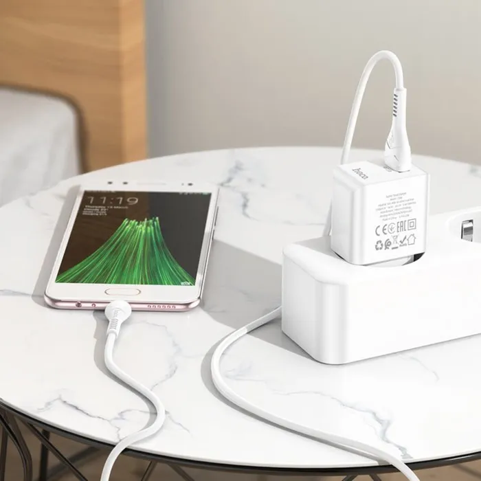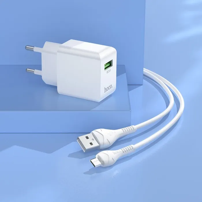 Сетевое зарядное устройство Hoco C98A, 1 USB, 18 Вт, QC, кабель Micro USB -USB, 1 м, белое — Характеристики