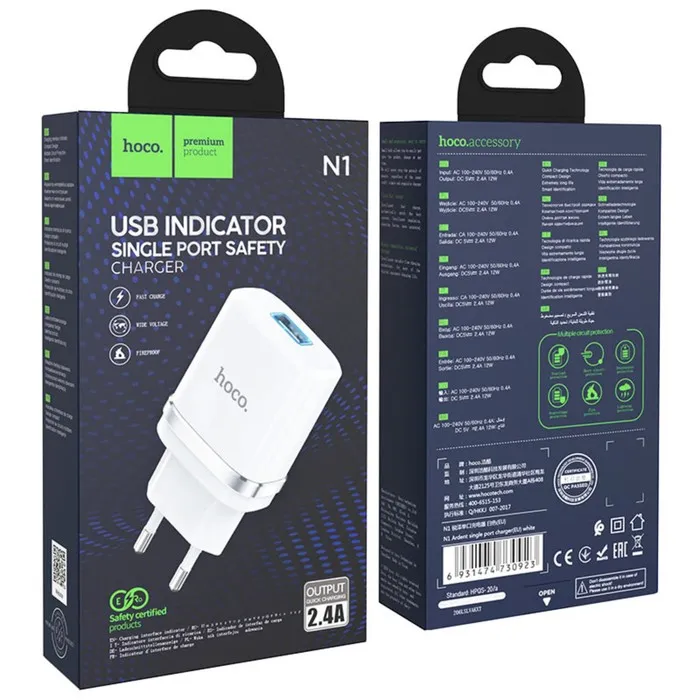 Сетевое зарядное устройство Hoco N1, 1 USB, 2.4 А, белое — Характеристики