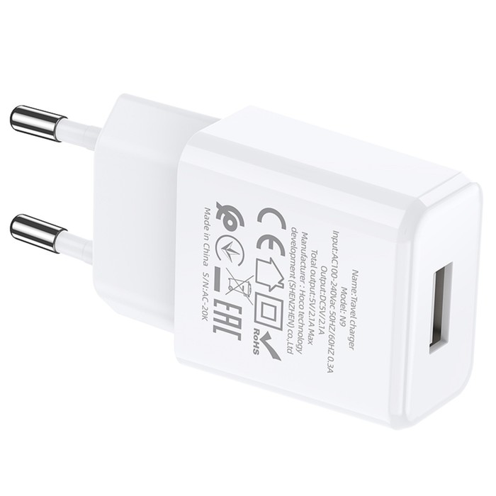 Сетевое зарядное устройство Hoco N9, USB - 2.1 А, белый — Характеристики