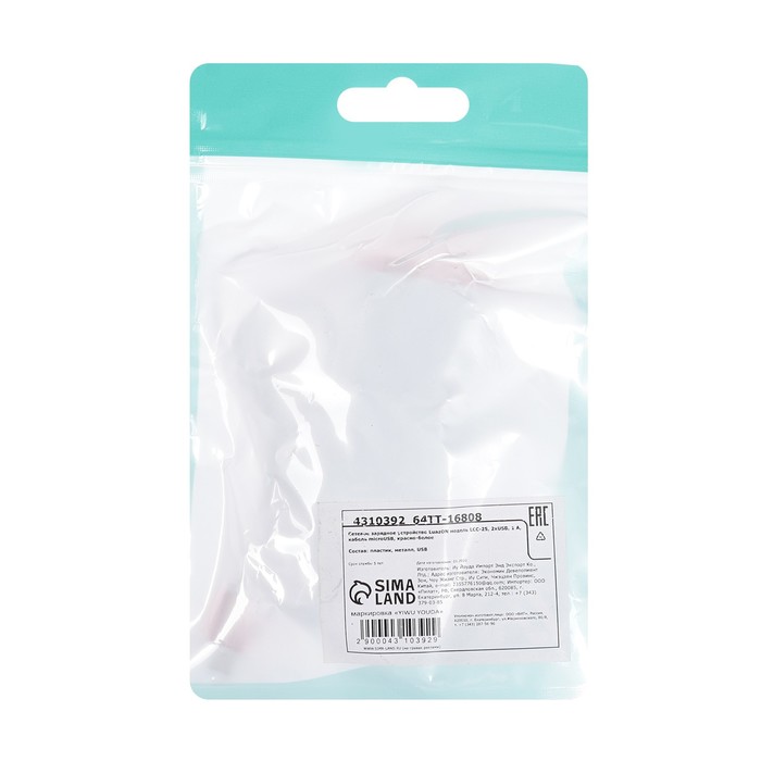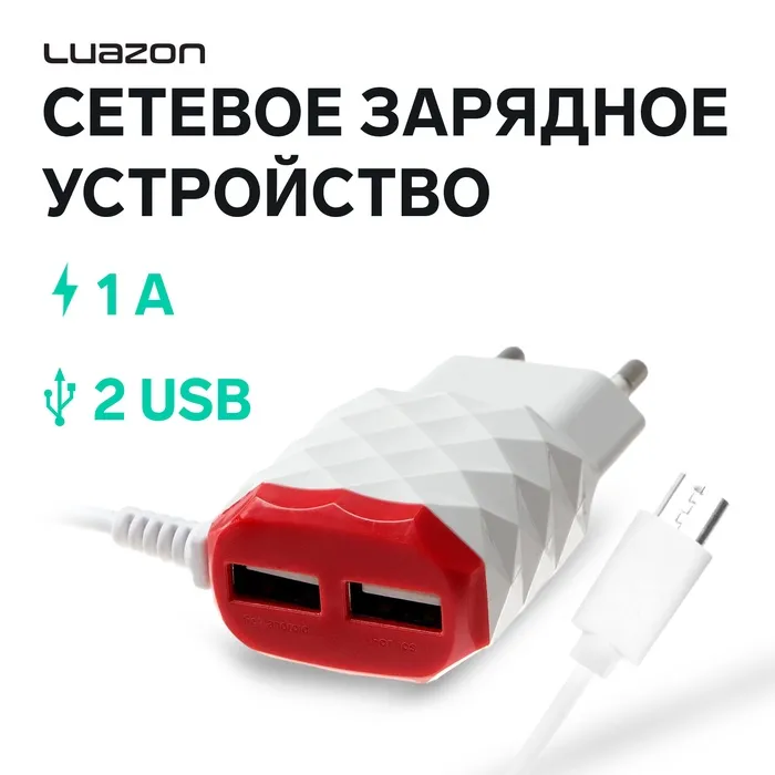 Сетевое зарядное устройство Luazon LCC-25, 2 USB, 1 А, кабель microUSB, красно-белое — Характеристики