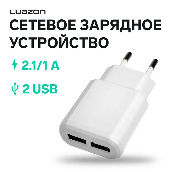 Сетевое зарядное устройство Luazon LN-120AC, 2 USB, 2.1/1 A, белое — Характеристики
