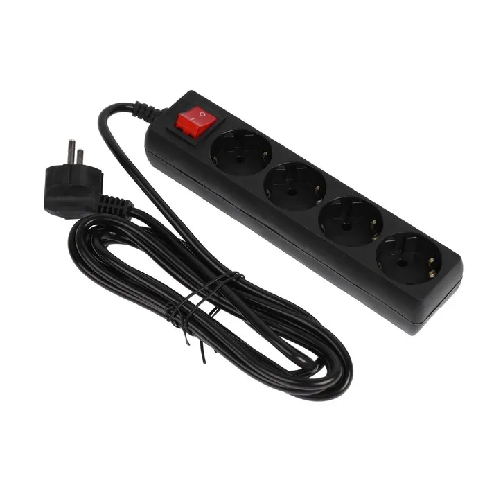 Сетевой фильтр 5bites SP4B-150 4S, 4 розетки, 5 м, 10 А, 3х0.75 мм2, с з/к, с выкл.,черный