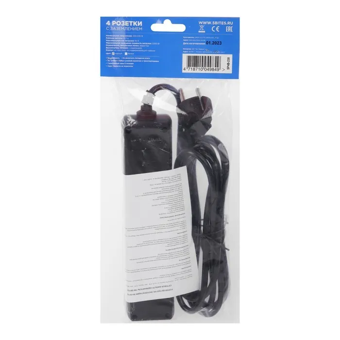 Сетевой фильтр 5bites SP4B-230 4S, 4 розетки, 3 м, 10 А, 3х0.75 мм2, с з/к, с выкл., черный — Характеристики