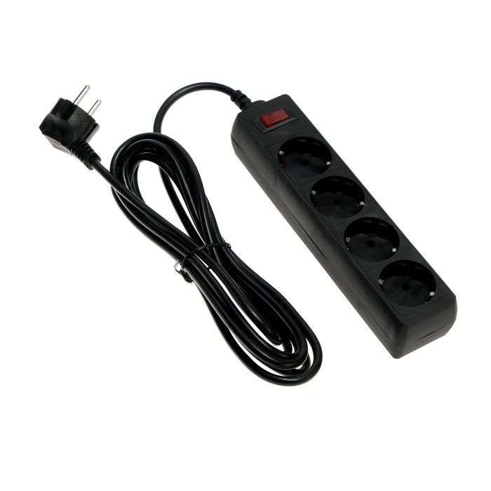Сетевой фильтр Luazon Lighting, 4 розетки, 3 м, 2200 Вт, 3 х 0.75 мм2, 10 А, 220 В, черный — Характеристики