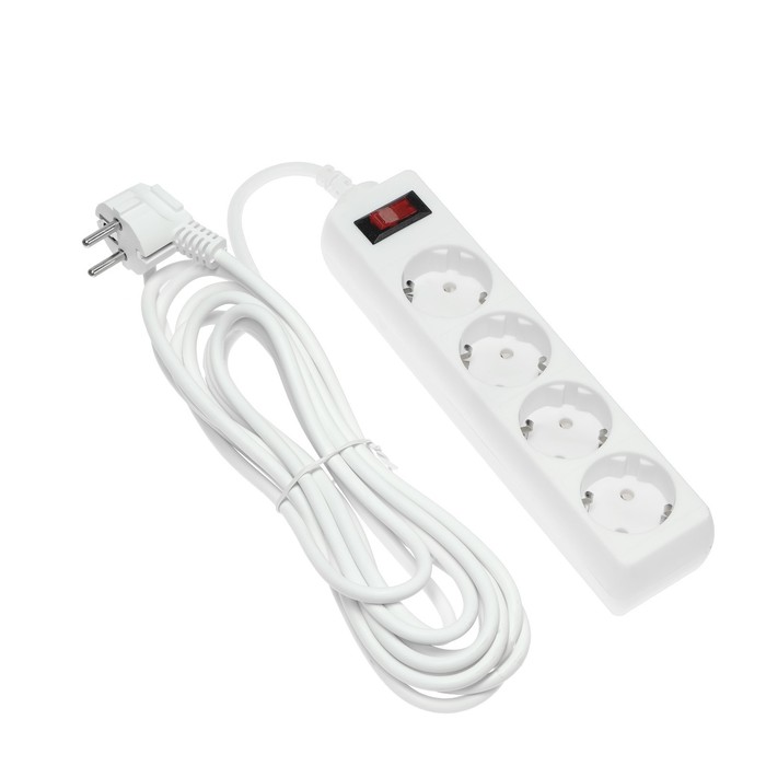 Сетевой фильтр Luazon Lighting, 4 розетки, 5 м, 2200 Вт, 3 х 0.75 мм2, 10 А, 220 В, белый — Характеристики