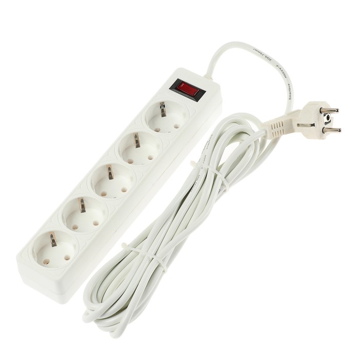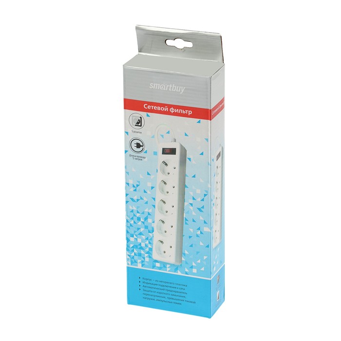 Сетевой фильтр Smartbuy, 5 розеток, 5 м, 10 А, 2200 Вт, с заземлением, белый — Характеристики