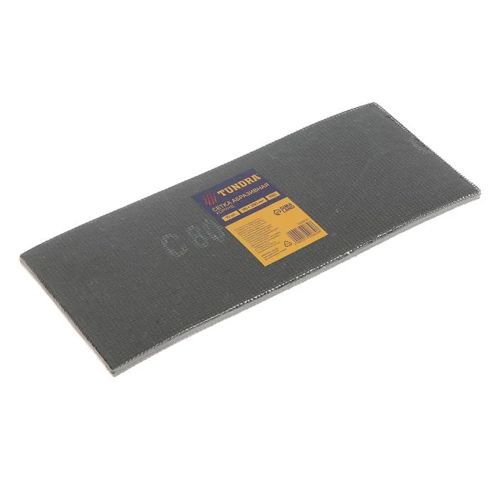 Сетка ТУНДРА представляет собой ячеистую тканевую основу с нанесённым абразивным материалом. Изделие предназначено для шлифования мягких штукатурок, гипсов, шпаклевки, а также для очищения металла, дерева, пластмассы. Структура в виде сетки обеспечивает удаление частиц устранённого материала с рабочей поверхности.
