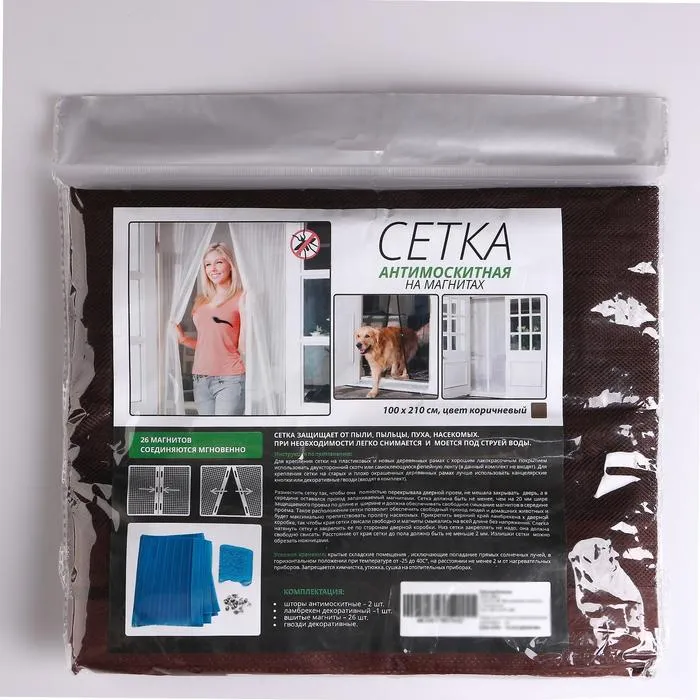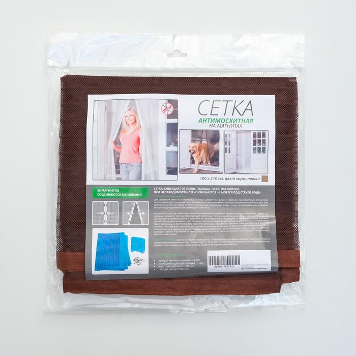 Сетка антимоскитная для дверей, 100 × 210 см, на магнитах, цвет коричневый — Характеристики