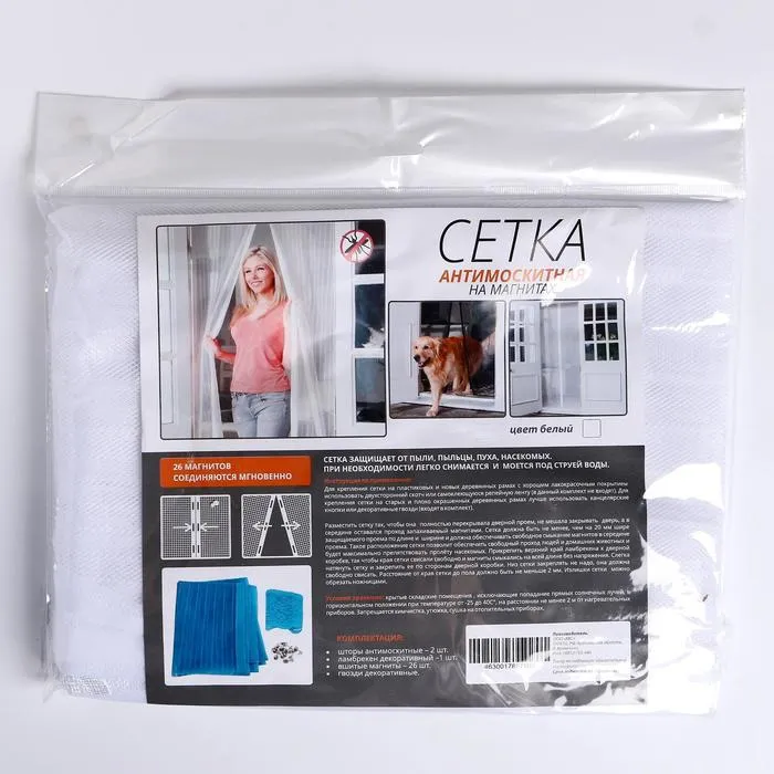 Сетка антимоскитная для дверей, 100×210 см, на магнитах, белая — Характеристики
