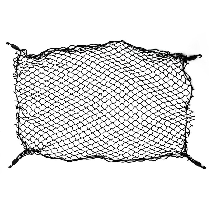 Сетка багажная напольная TORSO размером 90x75 см с 4 пластиковыми крючками - полезный аксессуар для автомобиля, предназначенный для фиксации и хранения различных предметов в багажнике. Сетка легко устанавливается с помощью крючков, которые обеспечивают надежное крепление к полу багажника. Она позволяет организовать пространство, предотвращая перемещение вещей во время движения автомобиля. Прочная и эластичная в сложенном виде занимает мало места.