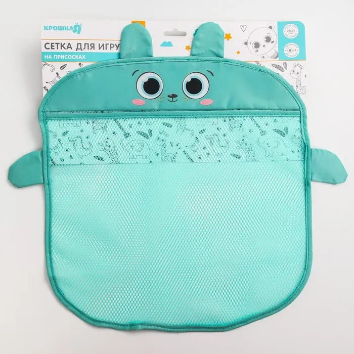 Сетка для хранения игрушек в ванной на присосках «Мишка», голубая