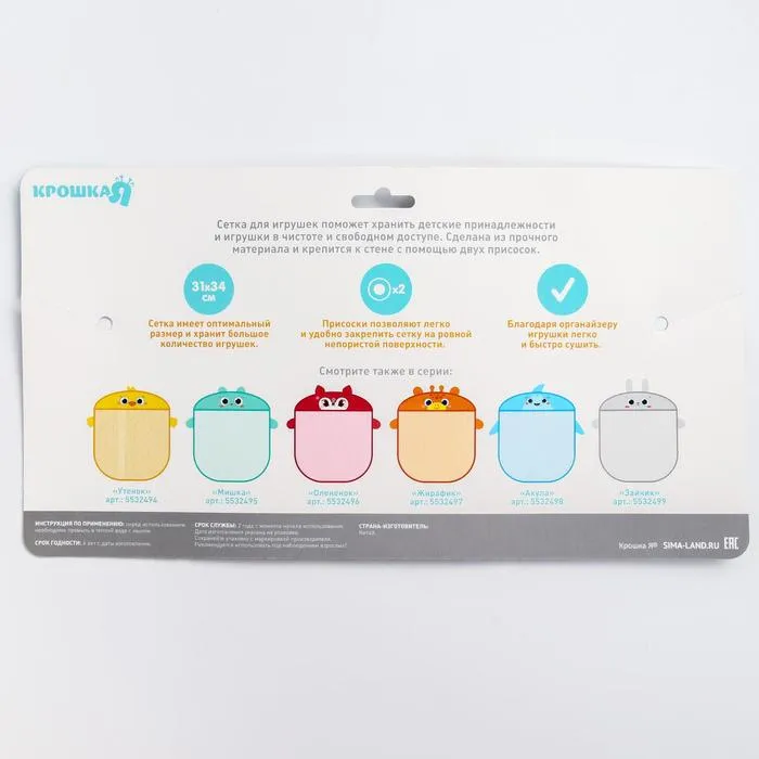 Сетка для хранения игрушек на присосках «Утёнок» — Характеристики