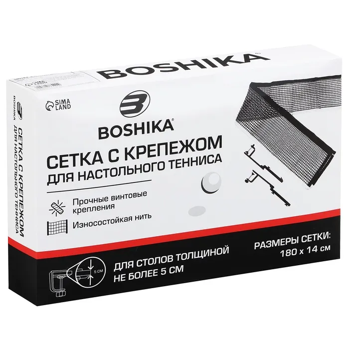 Сетка для настольного тенниса BOSHIKA, 180х14 см, с крепежом — Характеристики