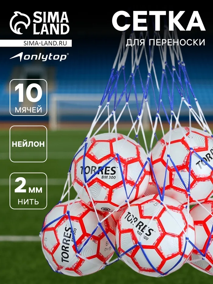 Сетка для переноски мячей ONLYTOP, на 10 мячей, нить 2 мм, цвета МИКС — Характеристики