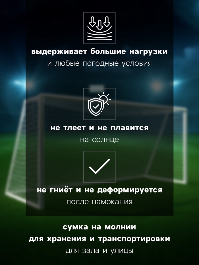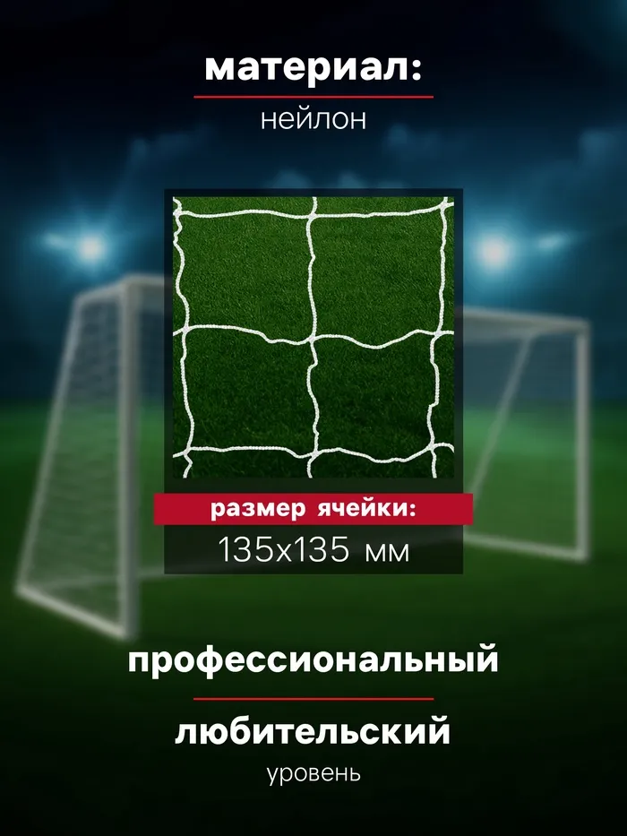 Сетка футбольная ONLYTOP, 7,5х2,5 м, нить 3 мм, 2 шт. — Характеристики
