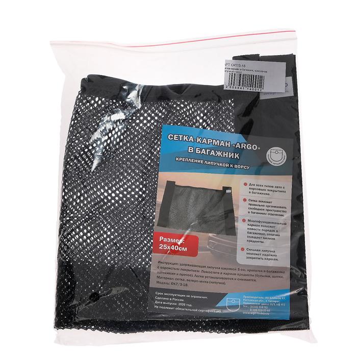 Сетка-карман в багажник, крепление липучкой к ворсу, 25 х 40 см – очень удобный аксессуар для Вашего автомобиля.