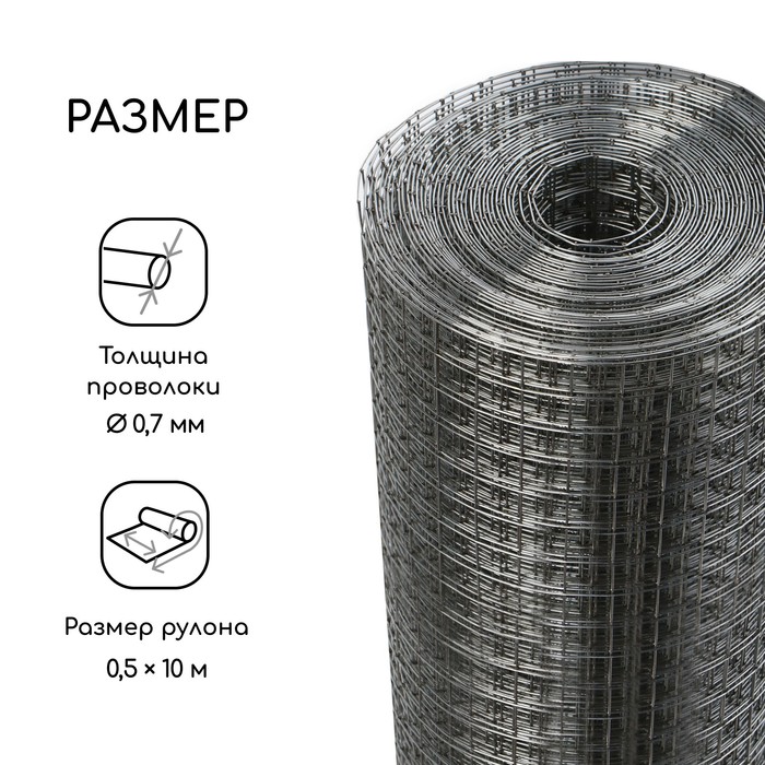 Сетка оцинкованная, сварная, 10×0.5 м, ячейка 12.5×12.5 мм, d=0.7 мм, Greengo — Характеристики