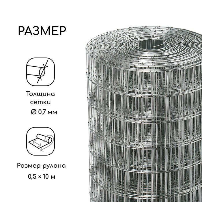 Сетка оцинкованная, сварная, 10×0.5 м, ячейка 12.5×25 мм, d=0.7 мм, Greengo — Характеристики