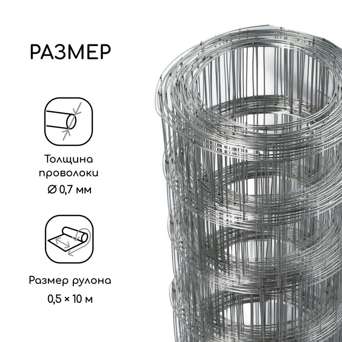Сетка оцинкованная, сварная, 10×0.5 м, ячейка 50×50 мм, d=0.7 мм, Greengo — Характеристики
