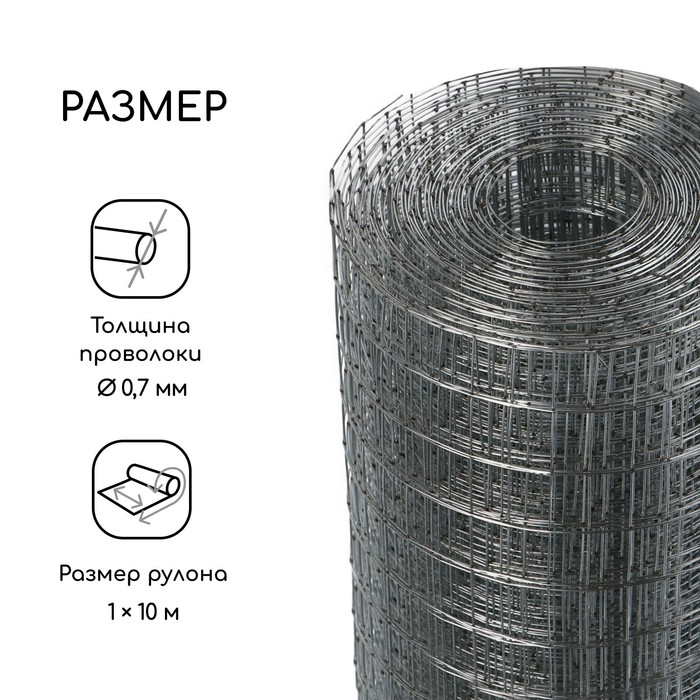 Сетка оцинкованная, сварная, 10×1 м, ячейка 20×20 мм, d=0.7 мм, Greengo — Характеристики