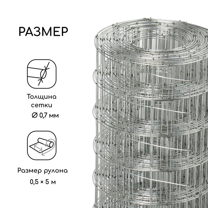 Сетка оцинкованная, сварная, 5×0.5 м, ячейка 25×25 мм, d=0.7 мм, Greengo — Характеристики