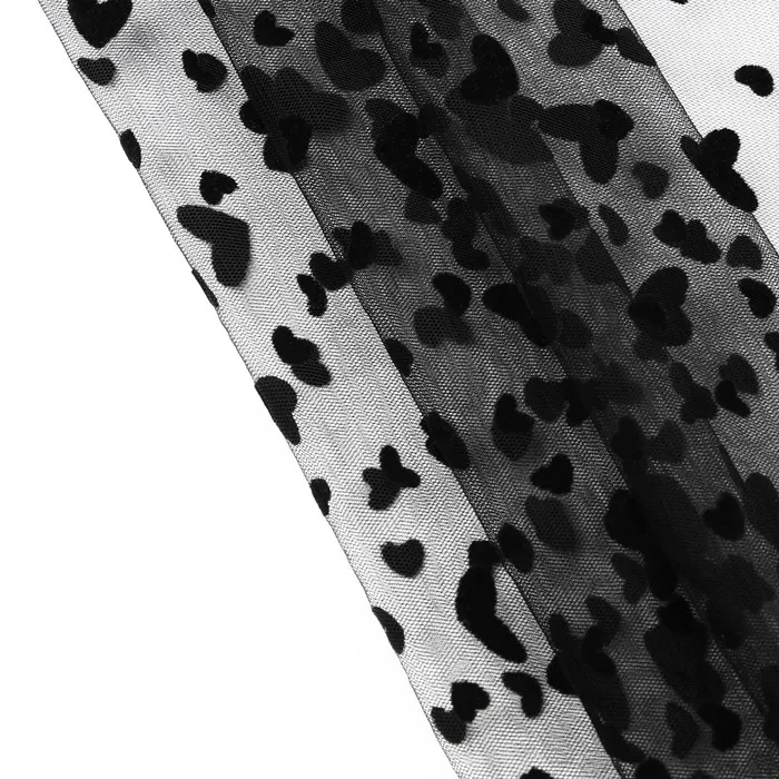 Сетка с флоком «Сердечки» сочетает в себе элегантность и приятную текстуру. Благодаря своей лёгкости и прозрачности она используется для создания объёмных воздушных дизайнов, романтических нарядов, аксессуаров, декоративных элементов или костюмов.