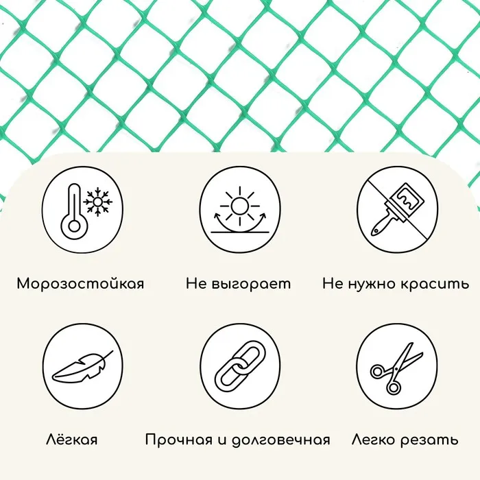 Сетка садовая, 1.5×10 м, ячейка ромб 40×40 мм, пластиковая, зелёная, Greengo, в рулоне — Характеристики