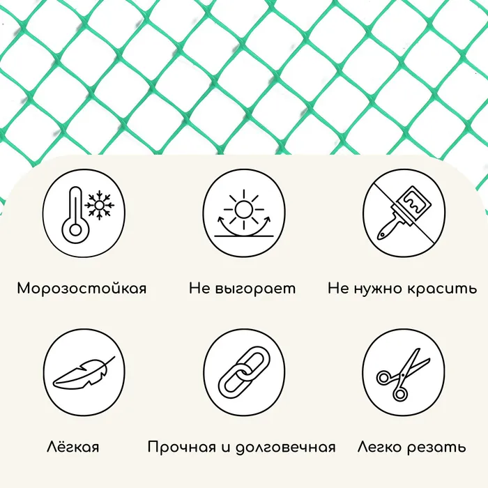 Сетка садовая, 1×10 м, ячейка квадрат 50×50 мм, пластиковая, зелёная, Greengo, в рулоне — Характеристики