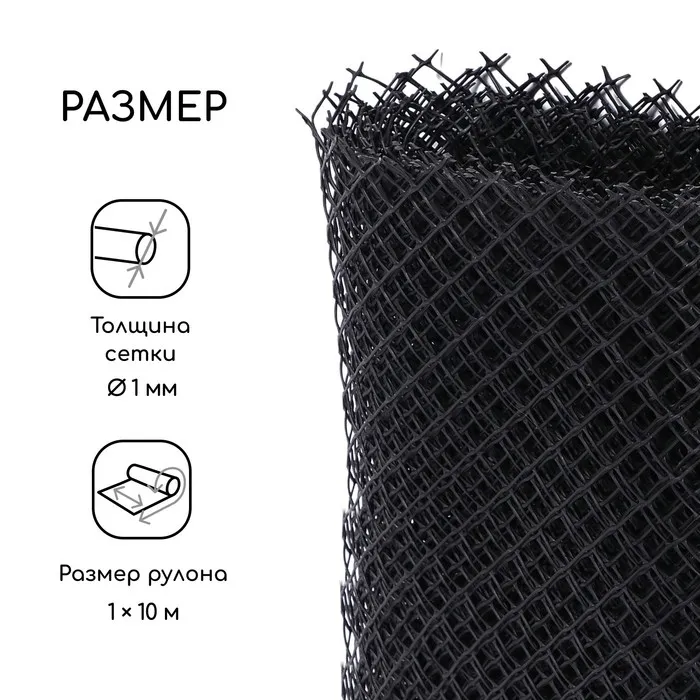 Сетка садовая, 1×10 м ячейка ромб 15×15 мм, пластиковая, чёрная, Greengo, в рулоне — Характеристики