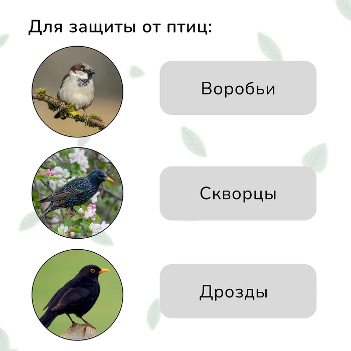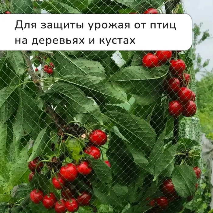 Сетка не позволяет птицам садиться на плодовые деревья и растения, защищает всходы молодых растений.