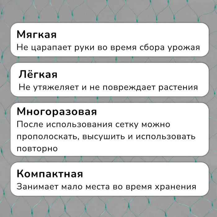 - Лёгкая сетка не повреждает растения под своим весом, её можно использовать и без каркаса.
