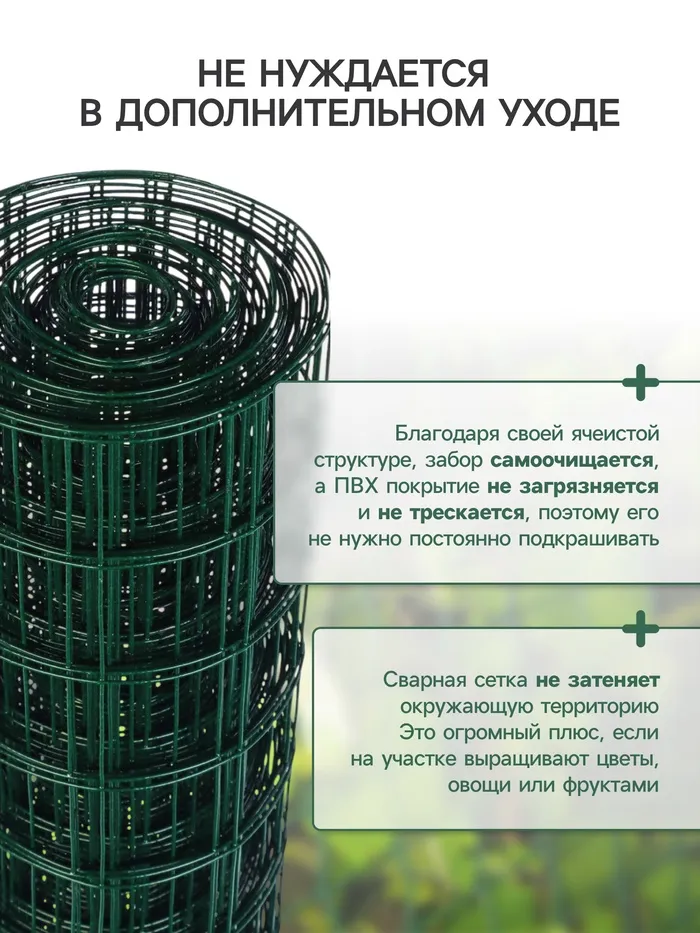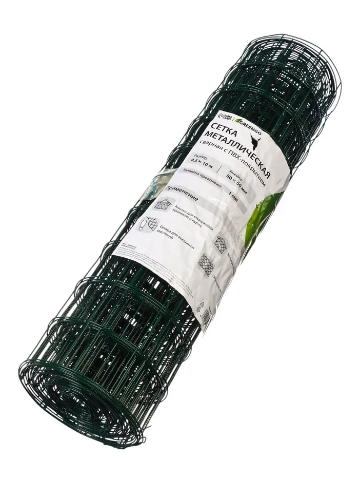 Сетка сварная с ПВХ покрытием 0,5 х 10 м, ячейка 50 х 50 мм, d=1 мм, металл, "Greengo" — Характеристики