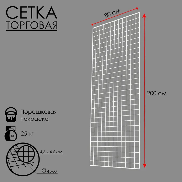 Сетка торговая 80×200 см, окантовка 6 мм, пруток - 4 мм, белая, (порошковое покрытие) — Характеристики