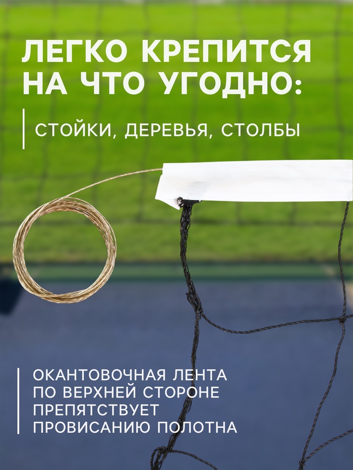 Волейбольная сетка может использоваться как для оборудования спортивных залов, в том числе в школах, так и на площадках для пляжного волейбола. Сетки различаются между собой размерами, толщиной тросов, выстой антенн и т.д. Также может варьироваться размер ячейки.