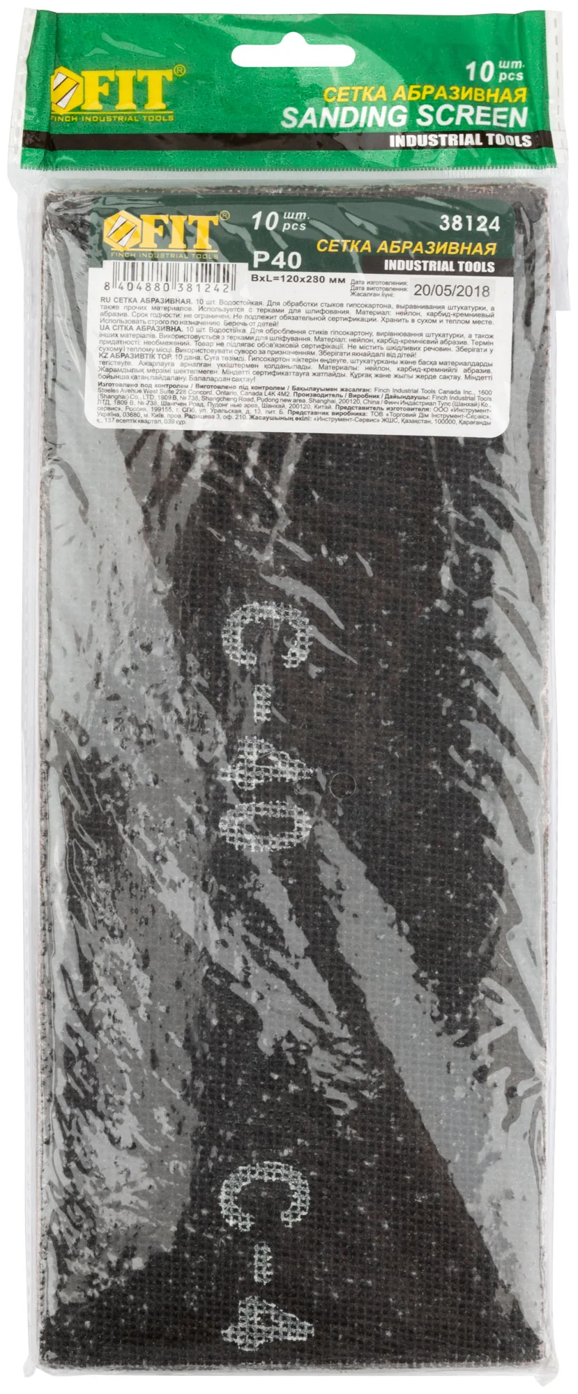 Шлифовальные сетки FIT имеют размер 120х280 мм и типоразмер P 40, что делает их универсальными для большинства задач. Они поставляются в удобной упаковке по 10 штук. Рекомендуется использовать их совместно с держателем, например, моделью 39735, для более эффективной работы.