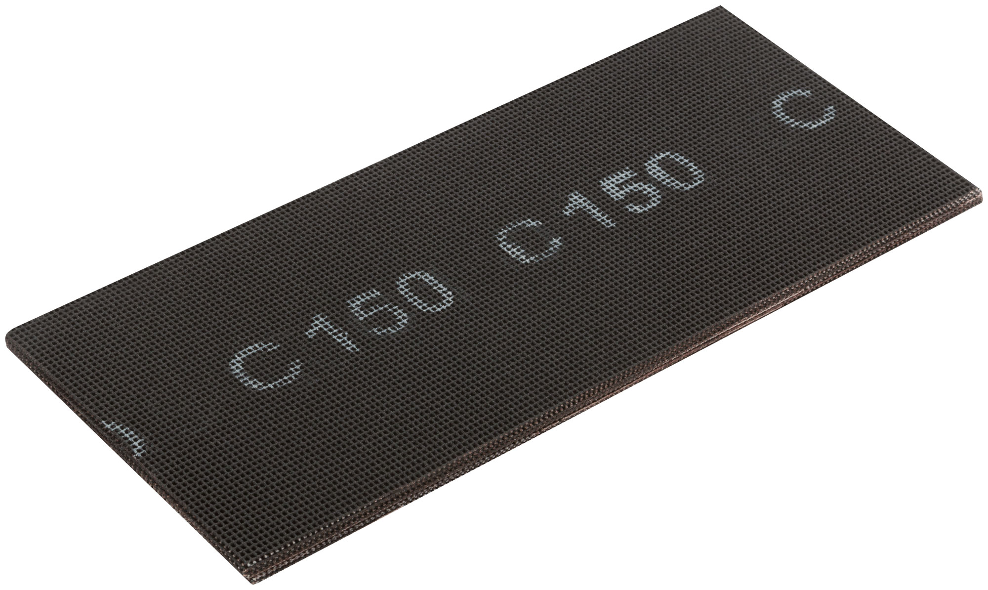 Сетки изготовлены из нейлона с карбид-кремниевым абразивом, что обеспечивает их прочность и долговечность. Сетчатая структура изделия предотвращает забивание ячеек продуктами обработки, что делает процесс шлифования более гладким и быстрым.