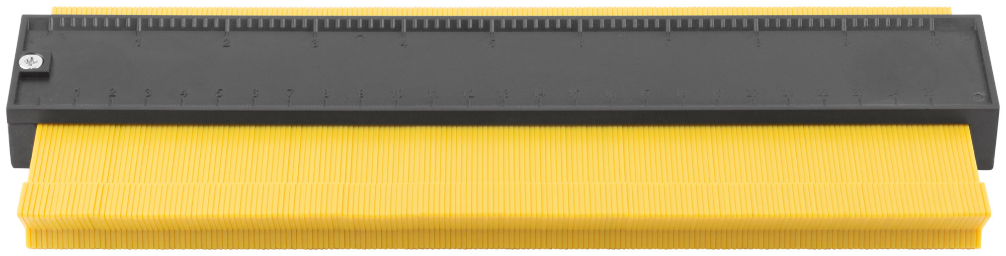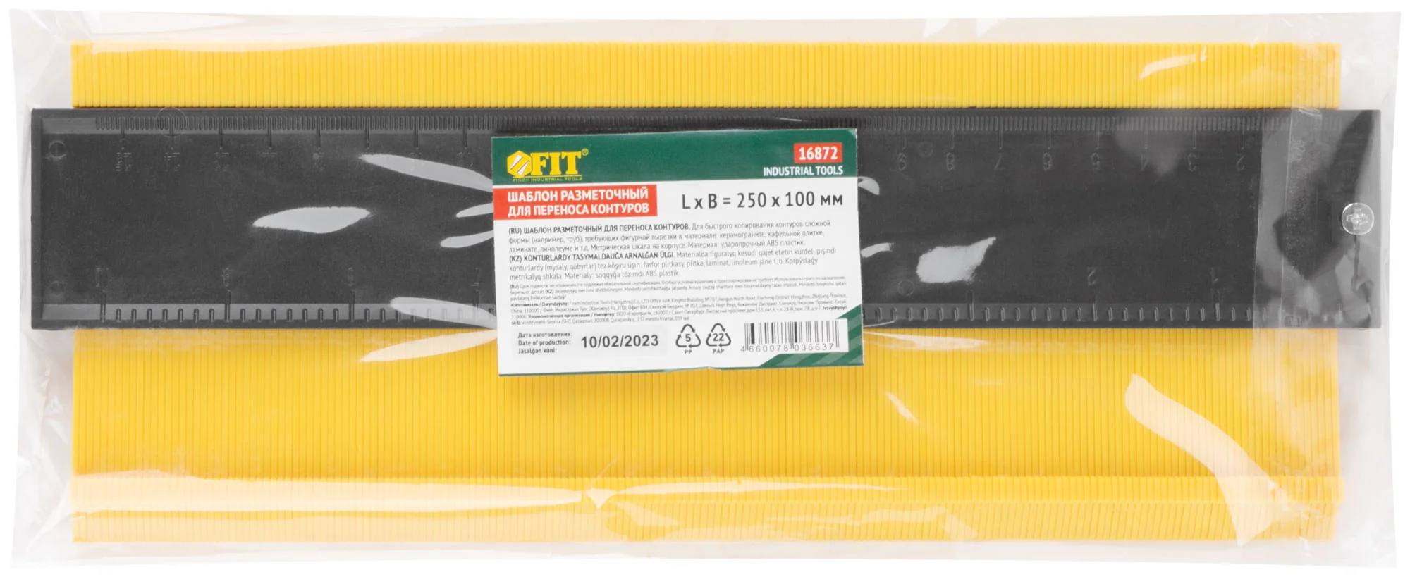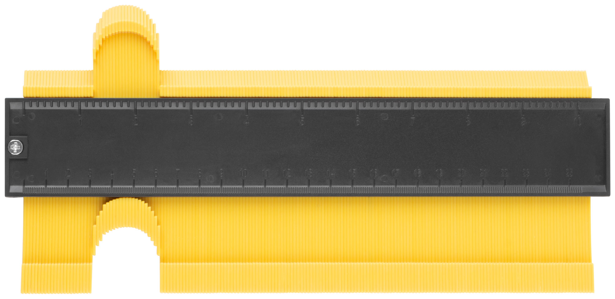 Шаблон изготовлен из ударопрочного ABS пластика, что обеспечивает долговечность и устойчивость к повреждениям. Его размеры 250 х 100 мм позволяют работать с разнообразными деталями.