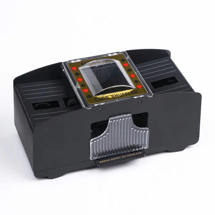 С его помощью можно перетасовать 1-2 колоды. Использование шафл-машинки исключает возможность мухлежа при перетасовке колоды. Одну колоду разделяют на две части и помещают в отверстия по бокам машинки. Карты смешиваются и опускаются в лоток внизу аппарата. Карты можно перемешивать неограниченное количество раз.