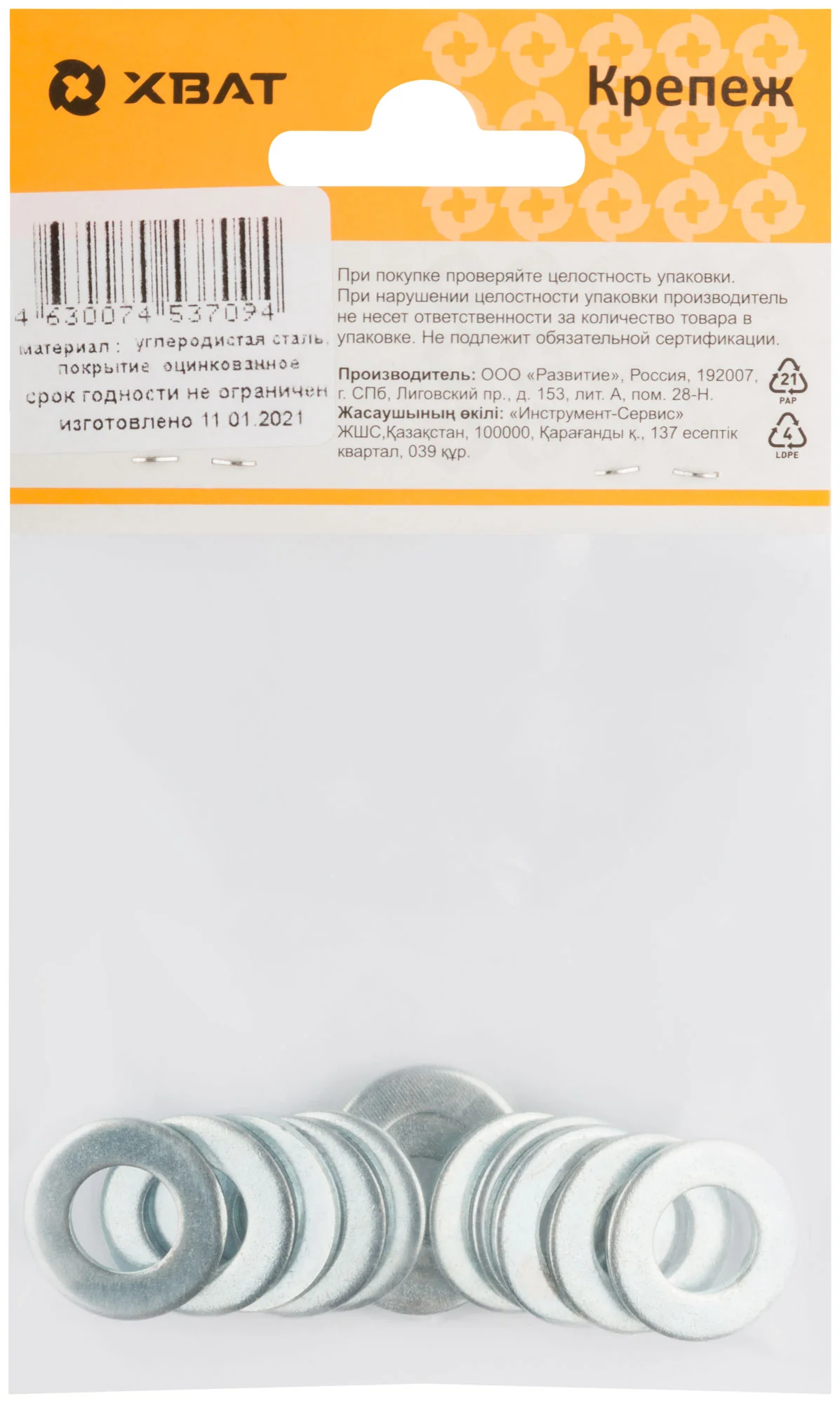 Эта плоская шайба изготовлена из конструкционной стали и покрыта цинком, что обеспечивает повышенную стойкость к коррозии. Оптимальная фасовка в 12 штук позволяет использовать её как для мелких работ, так и для более крупных проектов.