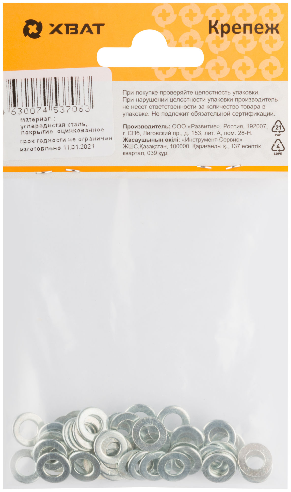 Эти шайбы изготовлены из конструкционной оцинкованной стали, что обеспечивает долгий срок службы и устойчивость к коррозии. Оцинковка защищает от ржавчины, делая их пригодными для использования в условиях повышенной влажности.