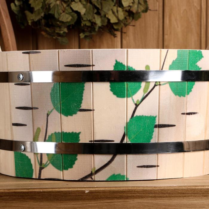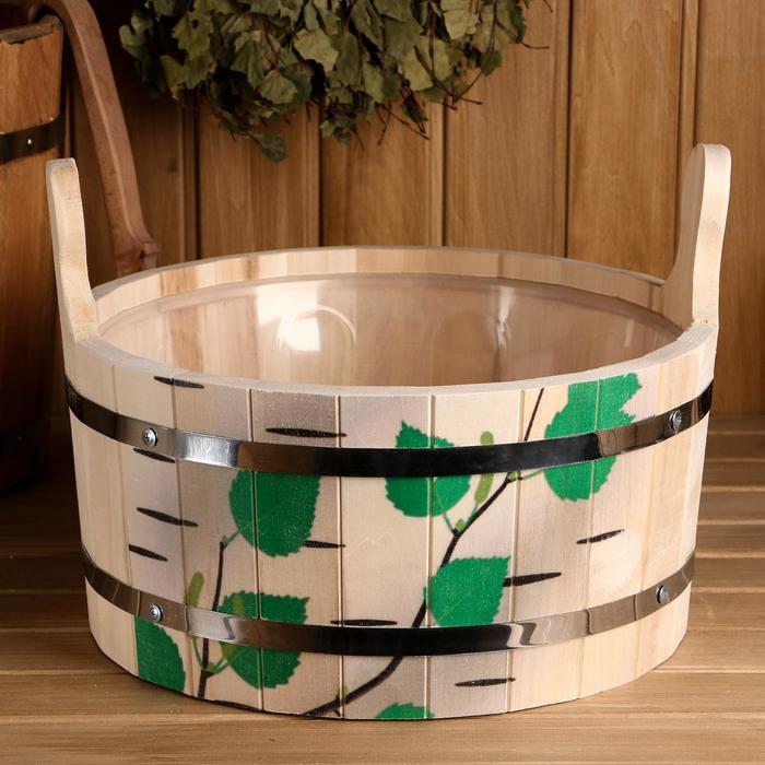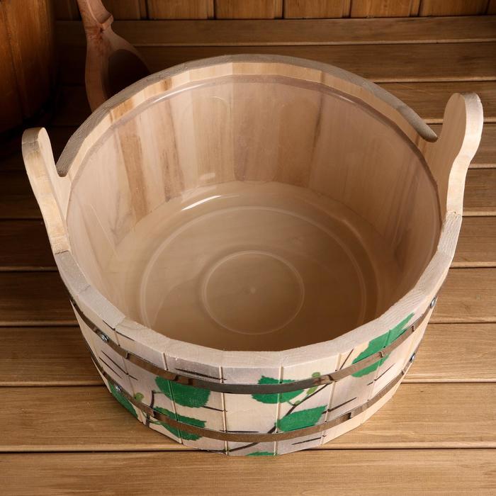Шайка из липы, 10 л, двуручная, пластиковая вставка, нержавеющий обод, "Берёзовый ствол"