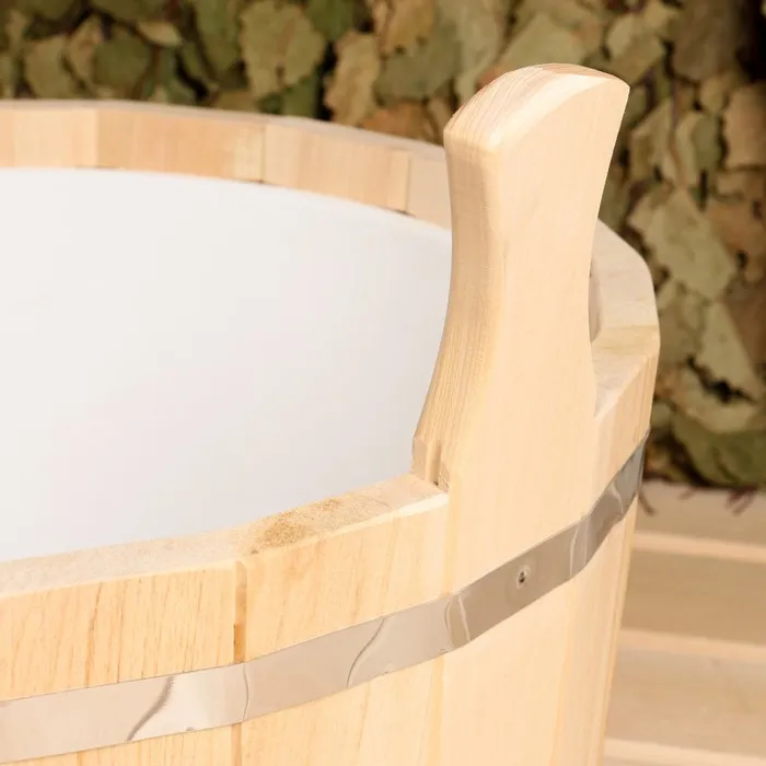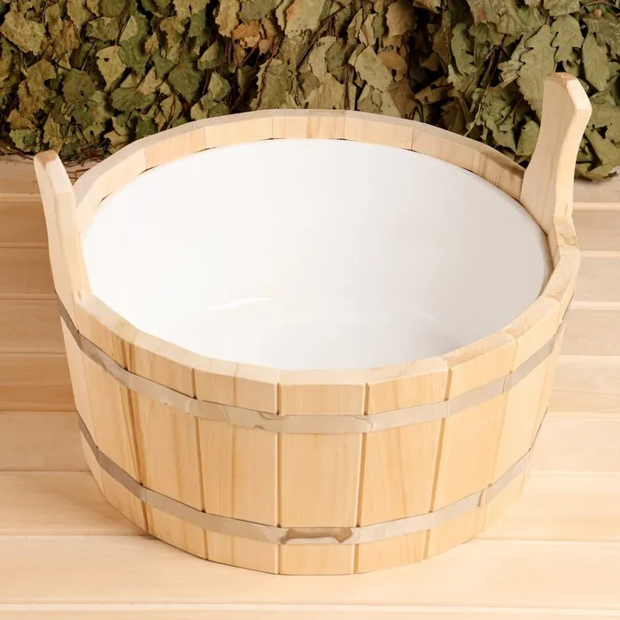 Шайка из липы, 15 л, круглая, пластиковая вставка