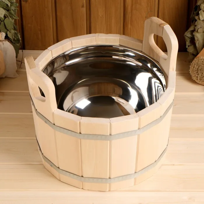 Шайка из липы, 9 л, круглая, нержавеющая вставка — Характеристики